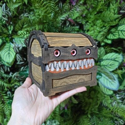 Three-eyed and always watching, Hydra’s Hoard is a large mimic chest that dwarfs its predecessor, Hydra’s Box, in both size and presence. Part of the Fantasy Series, this imposing chest blends mischievous charm with practical storage, making it a thrilling addition to any collection or tabletop display.